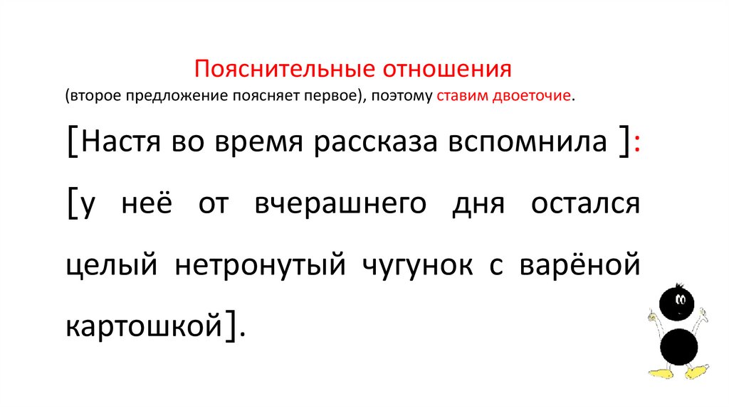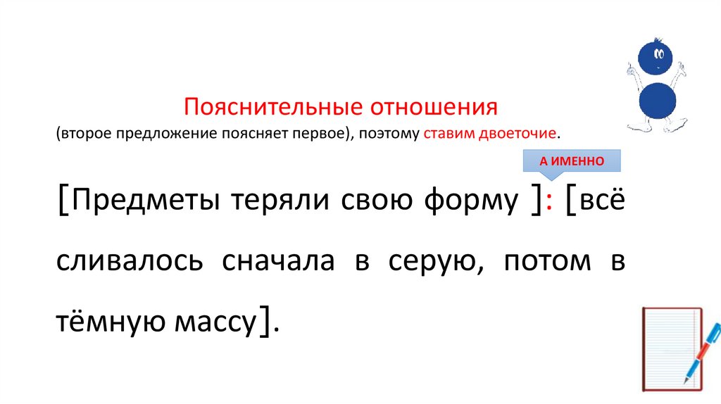 * Второе предложение поясняет в первом предложении