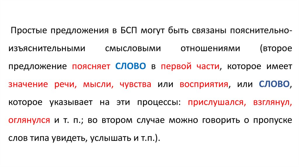 Простые предложения в БСП могут быть связаны пояснительноизъяснительнымисмысловыми