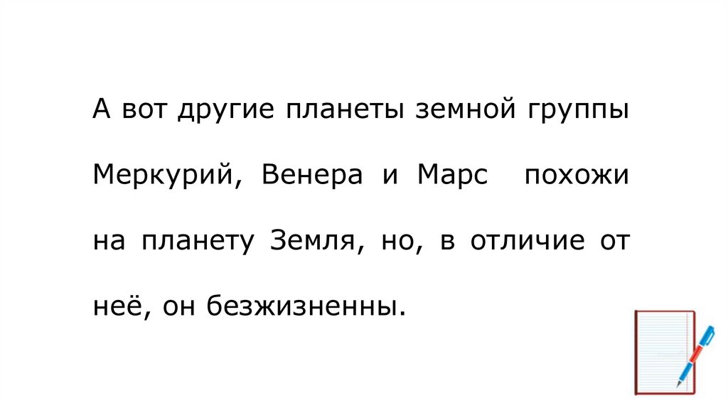 А вот другие планеты земной группыМеркурий, Венера и Марс