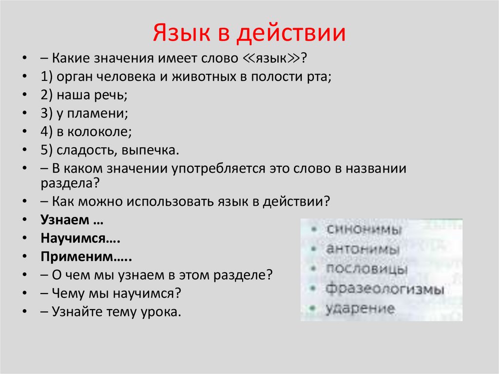 Язык в действии– Какие значения имеет слово ≪язык≫?