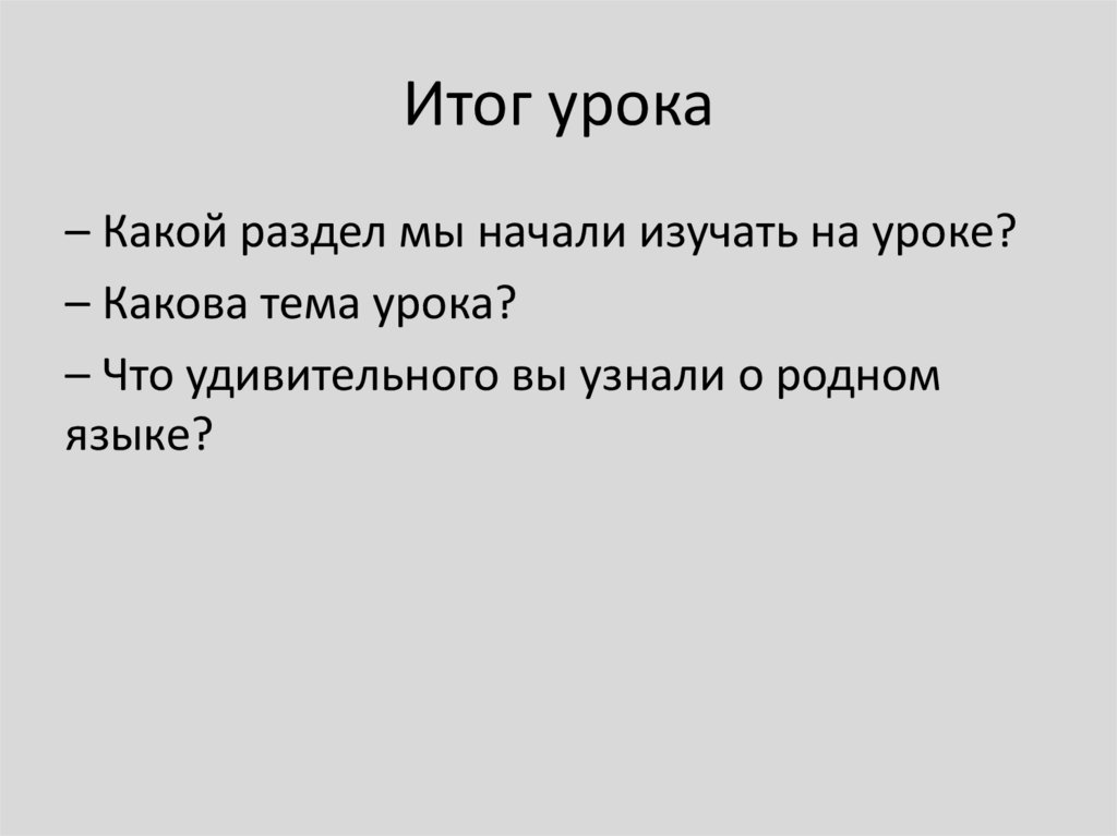 Итог урока– Какой раздел мы начали изучать на уроке?