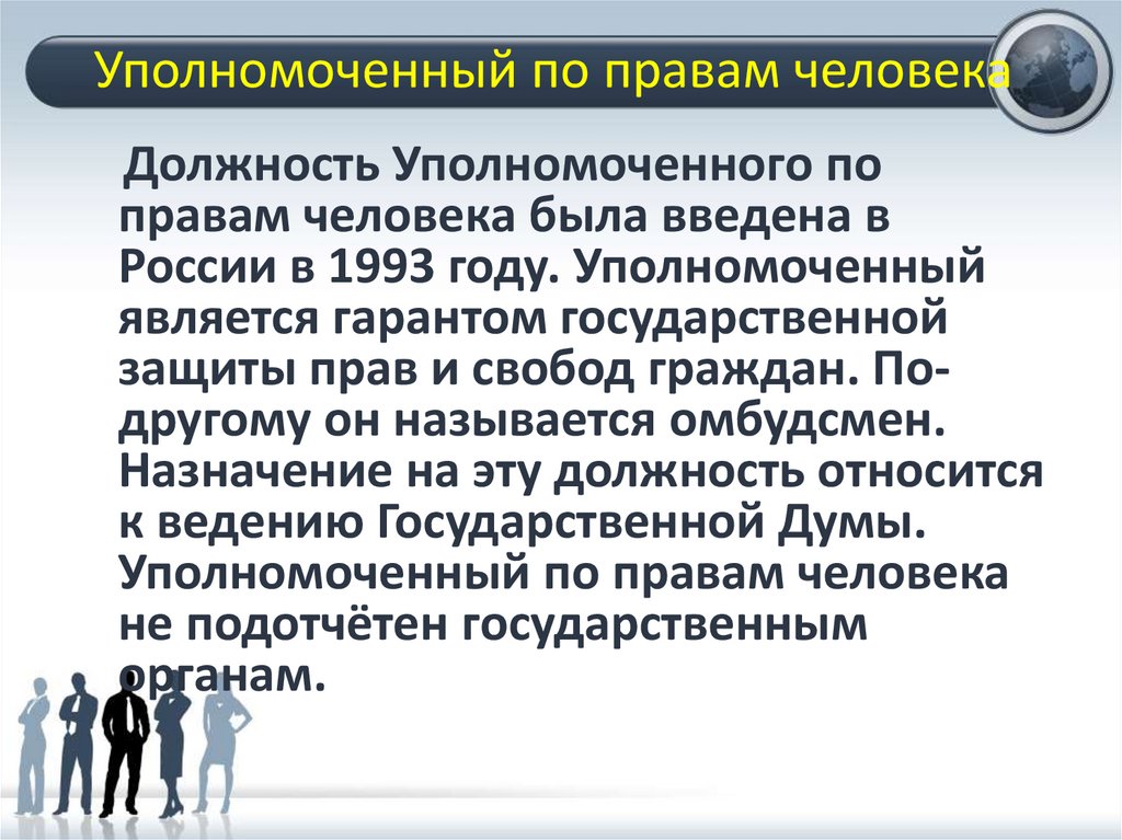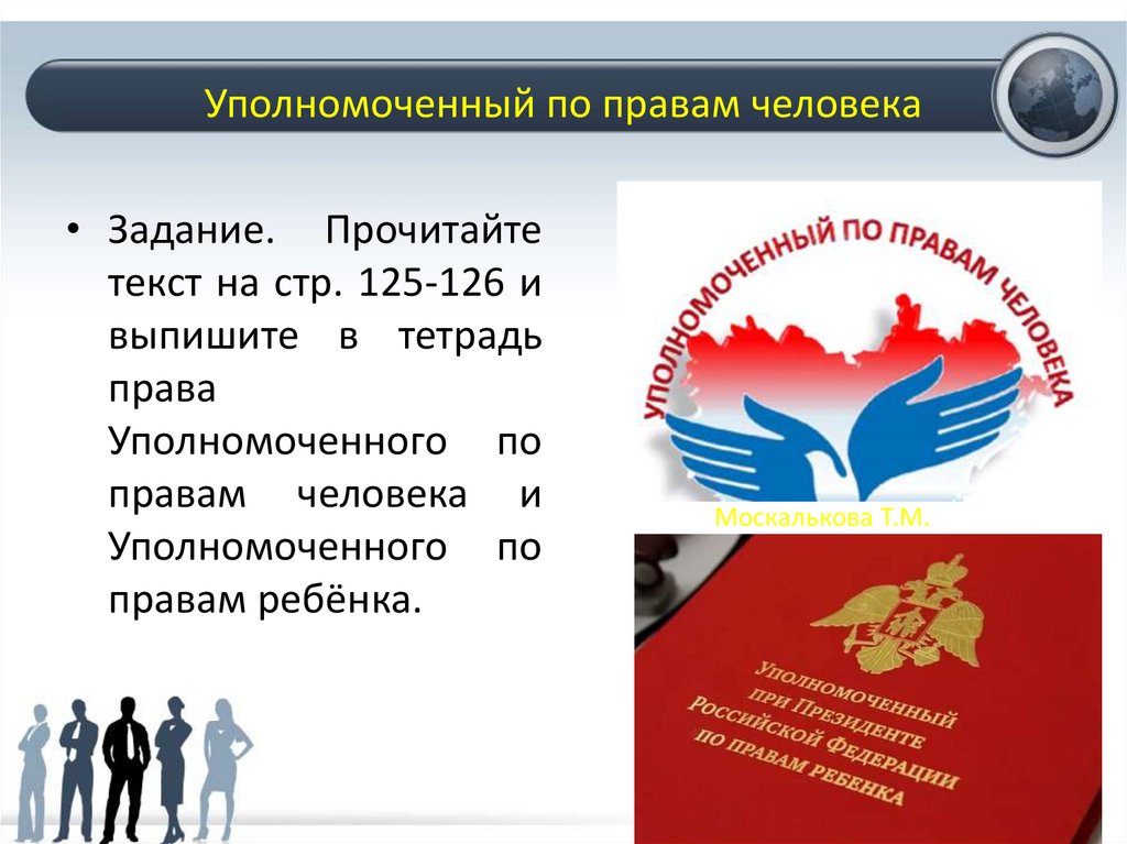 Уполномоченный по правам человека• Задание. Прочитайте