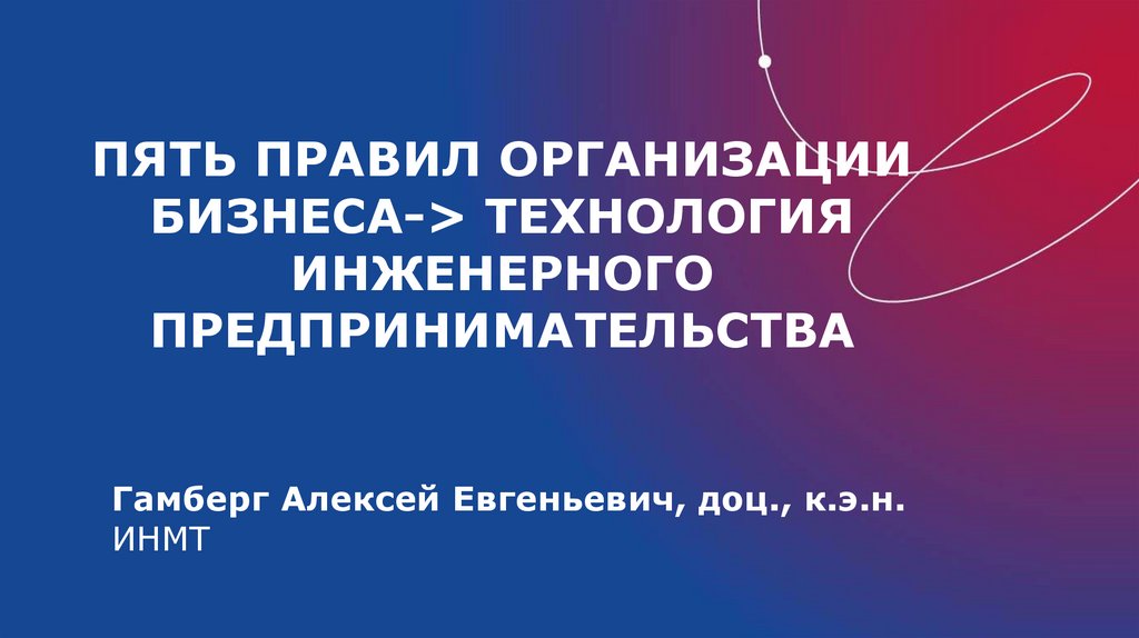 Пять правил организации бизнеса - технология инженерного предпринимательства