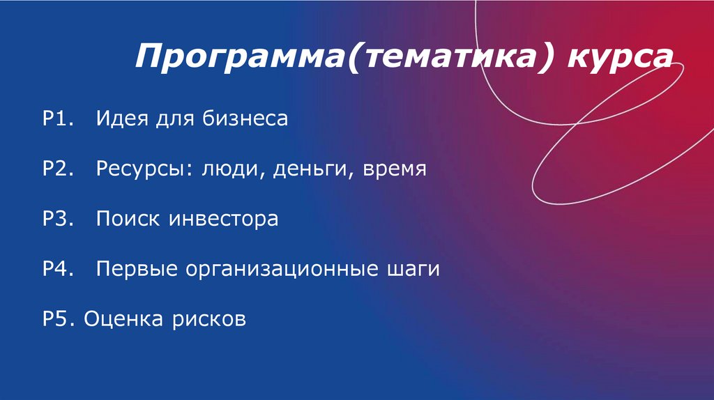 Программа(тематика) курсаР1. Идея для бизнеса