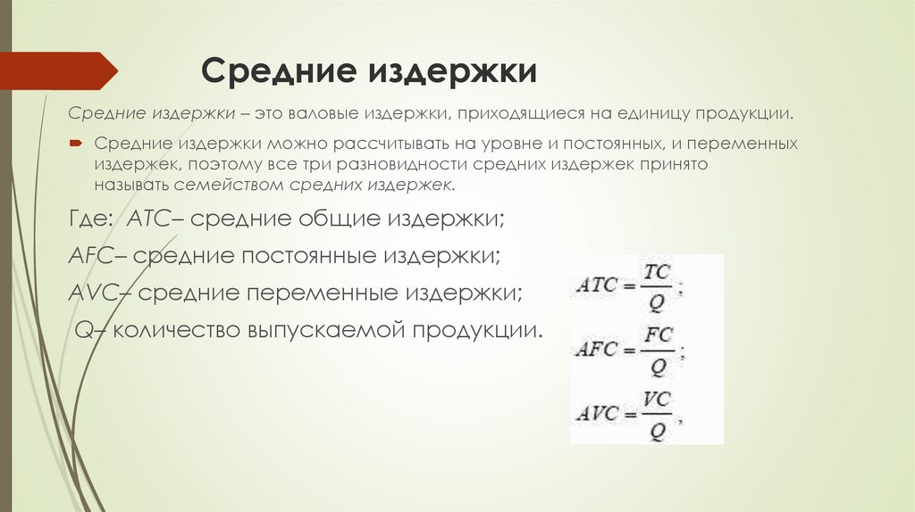Средние издержкиСредние издержки – это валовые издержки, приходящиеся на единицу продукции.