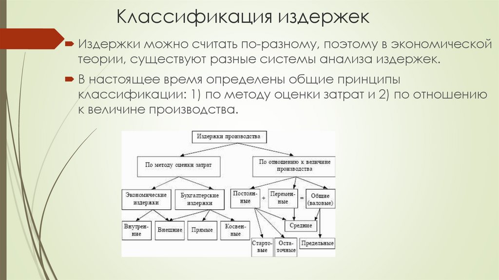 Классификация издержекИздержки можно считать по-разному, поэтому в экономической
