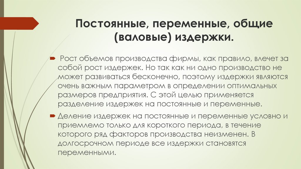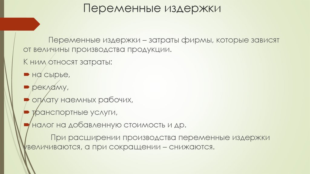 Переменные издержкиПеременные издержки – затраты фирмы, которые зависят