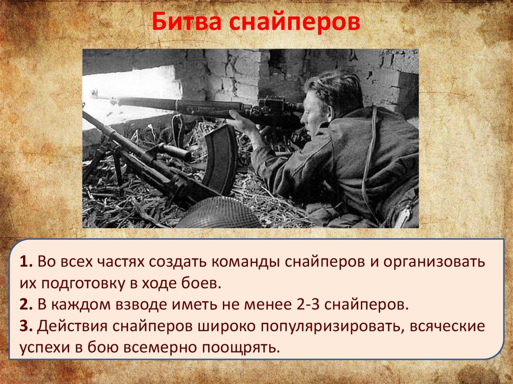 3. Действия снайперов широко популяризировать, всяческие
