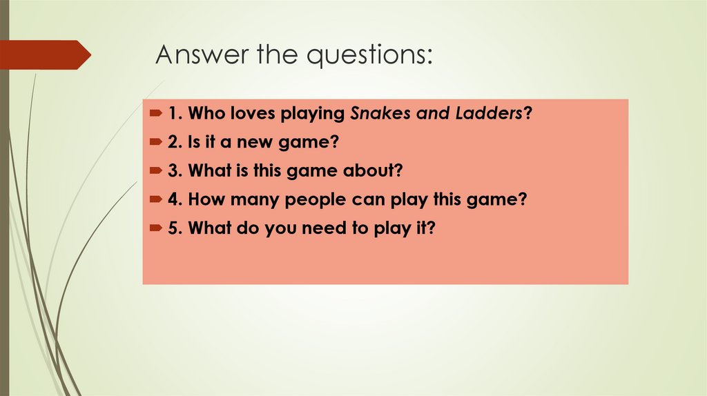 Answer the questions:1. Who loves playing Snakes and Ladders?