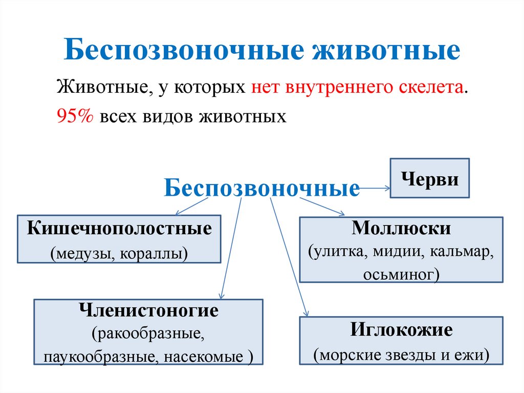 Беспозвоночные животныеЖивотные, у которых нет внутреннего скелета.