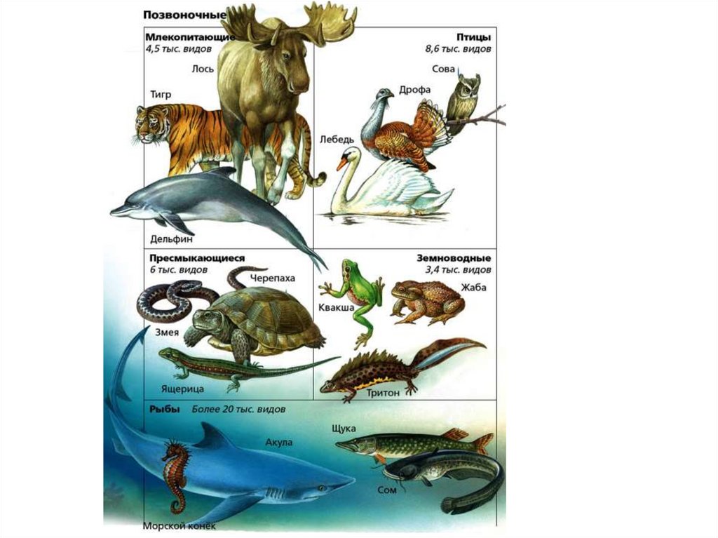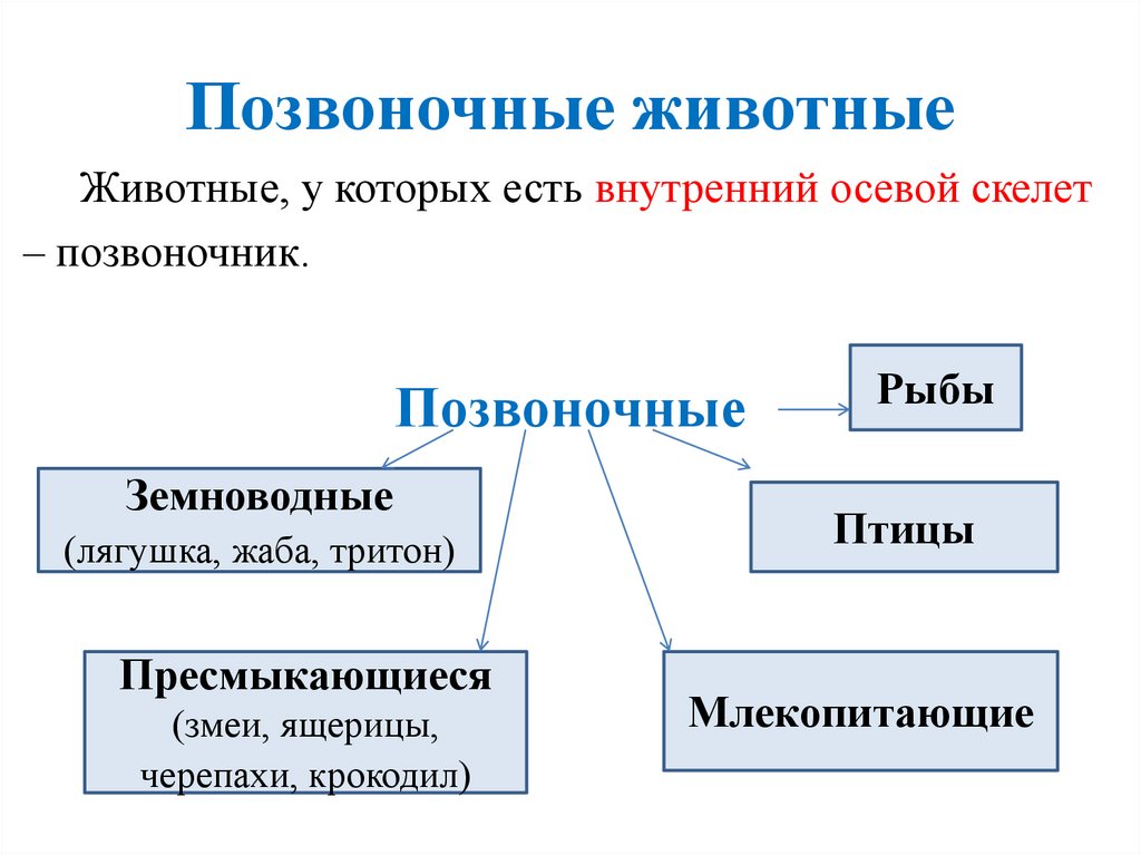 Позвоночные животныеЖивотные, у которых есть внутренний осевой скелет