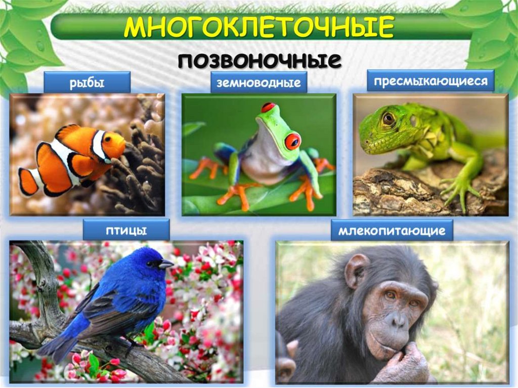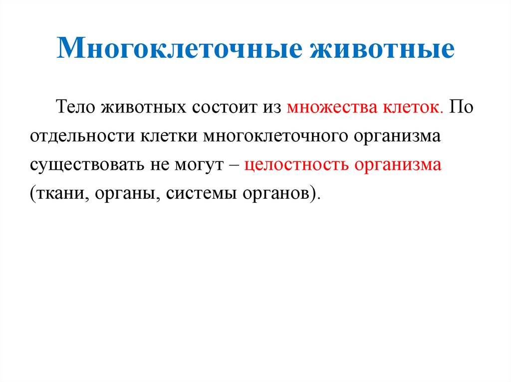 Многоклеточные животныеТело животных состоит из множества клеток. По