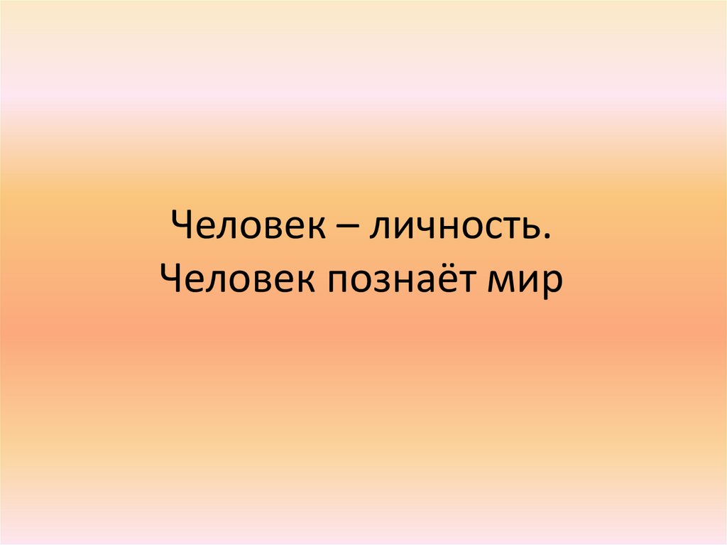 Человек-личность. Человек познаёт мир