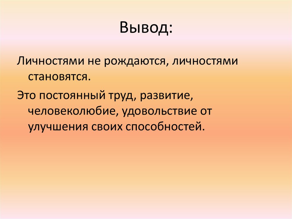 Вывод:Личностями не рождаются, личностями