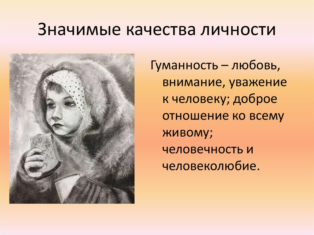 Значимые качества личностиГуманность – любовь,