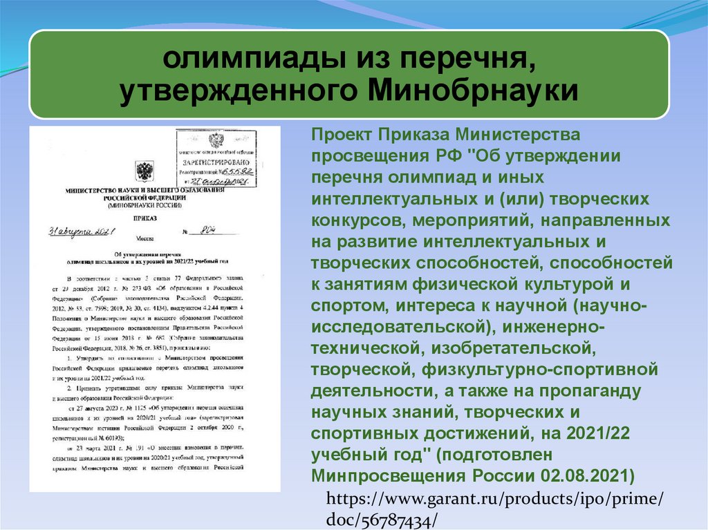 • олимпиады из перечня, утвержденного