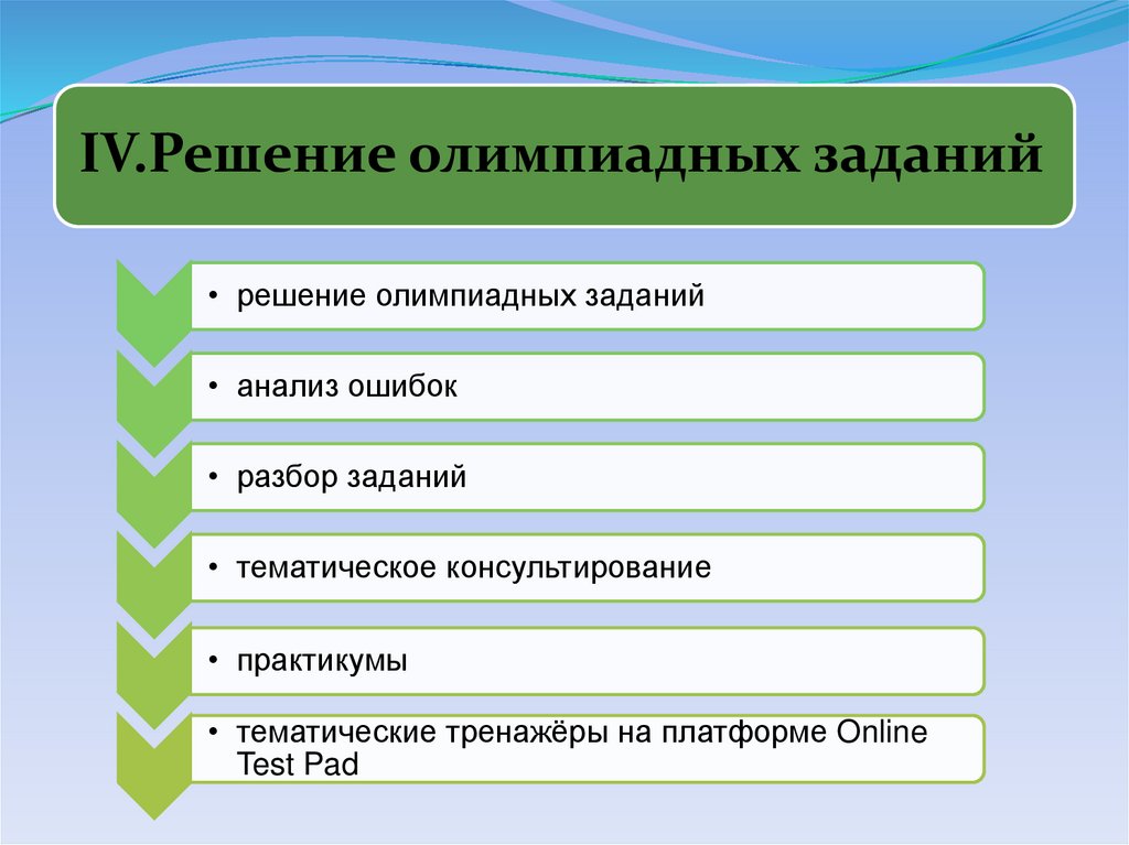 IV.Решение олимпиадных заданий• решение олимпиадных заданий