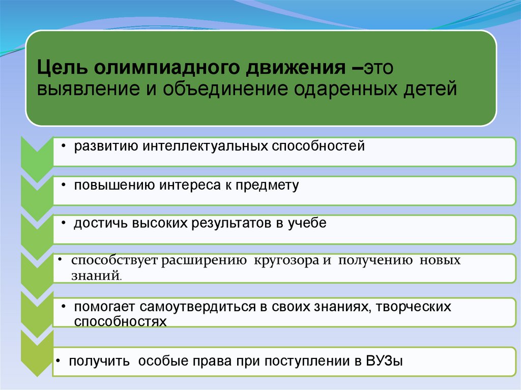 Цель олимпиадного движения –этовыявление и объединение одаренных детей