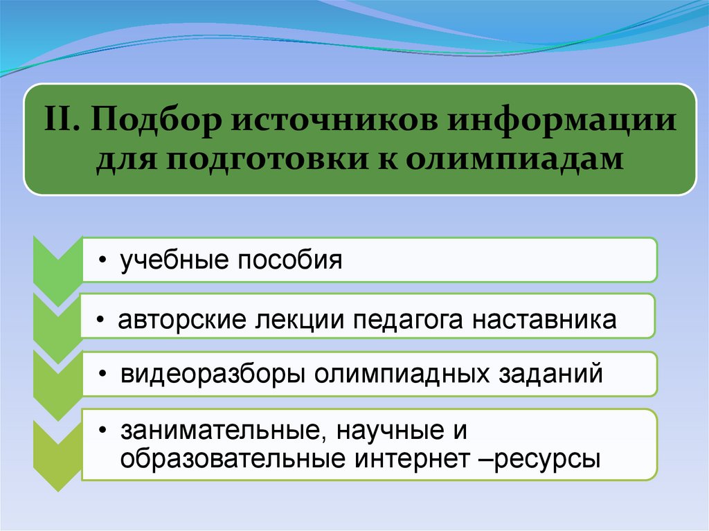 II. Подбор источников информациидля подготовки к олимпиадам