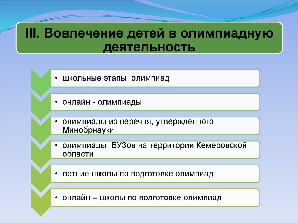 III. Вовлечение детей в олимпиаднуюдеятельность