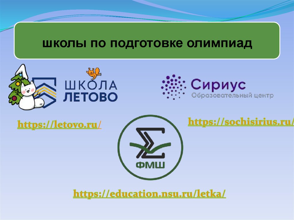 • онлайн – школы по подготовке олимпиад