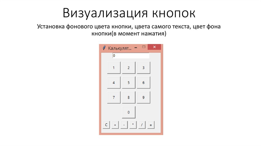 Визуализация кнопокУстановка фонового цвета кнопки, цвета самого текста, цвет фона