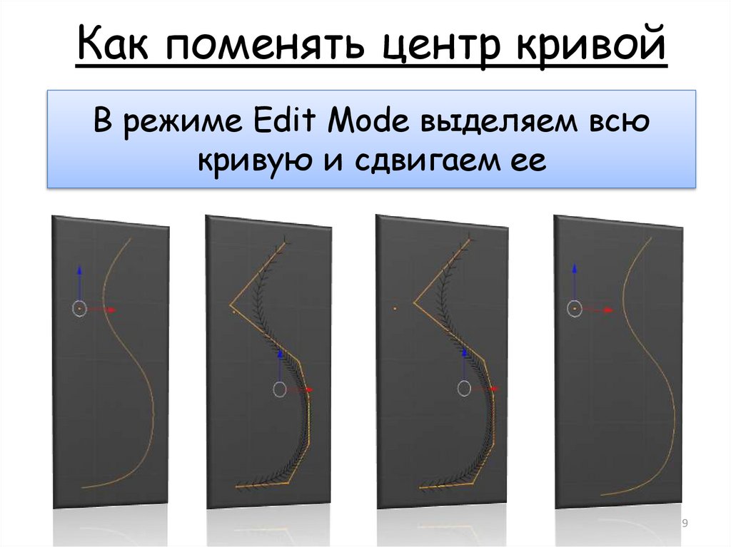 Как поменять центр кривойВ режиме Edit Mode выделяем всю