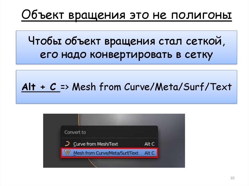 Объект вращения это не полигоныЧтобы объект вращения стал сеткой,
