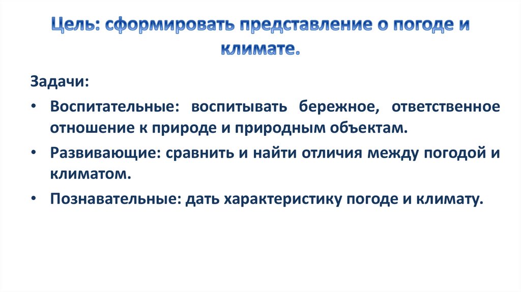 Задачи:• Воспитательные: воспитывать бережное, ответственное