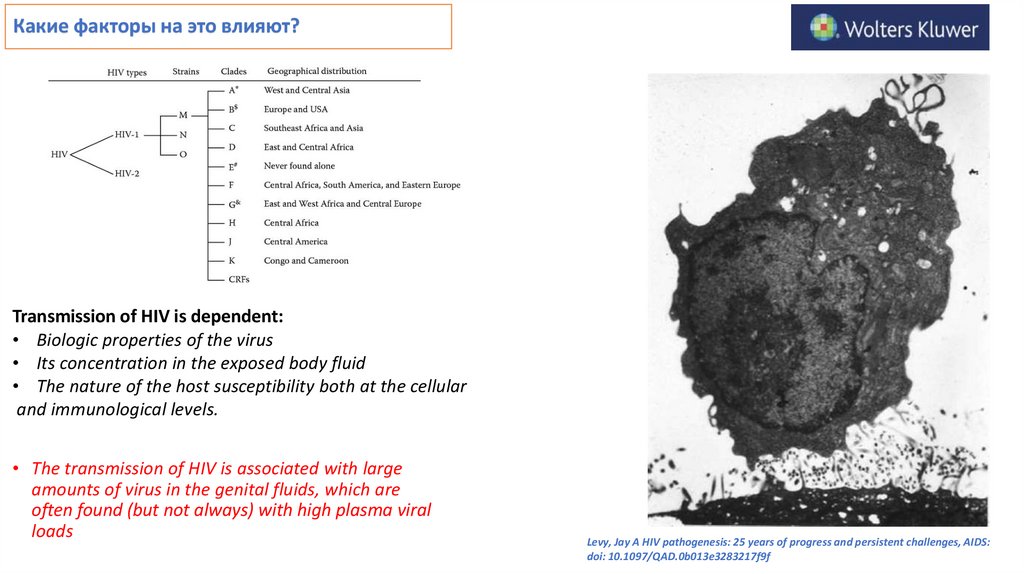 Какие факторы на это влияют?Transmission of HIV is dependent: