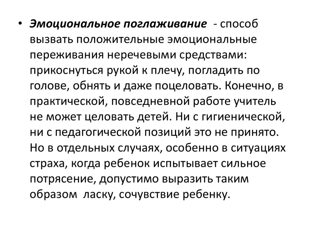 • Эмоциональное поглаживание - способвызвать положительные эмоциональные