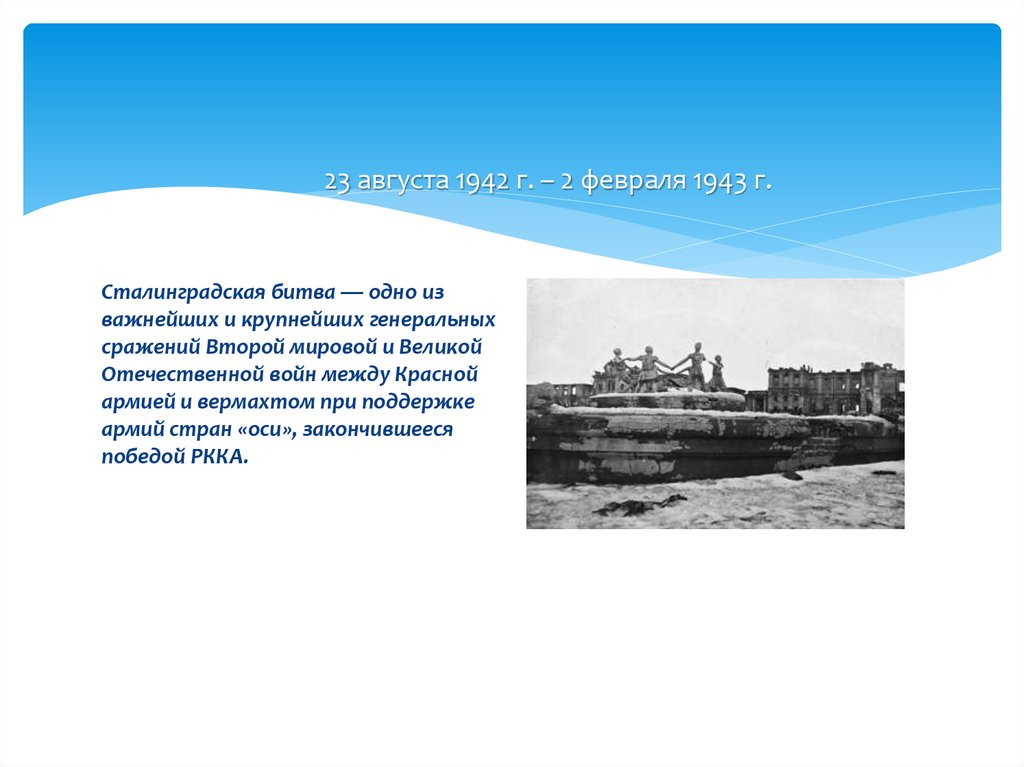 23 августа 1942 г. – 2 февраля 1943 г.Сталинградская битва — одно из