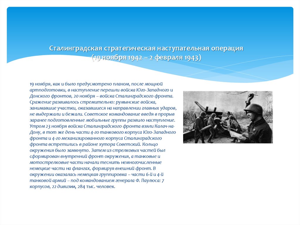 Сталинградская стратегическая наступательная операция(19 ноября 1942 – 2 февраля 1943)