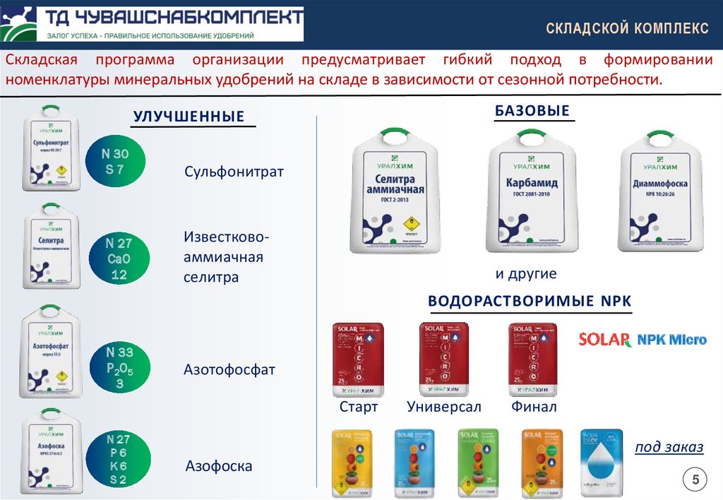 - увеличение ассортимента (жидкие и жидкие комплексные удобрения)