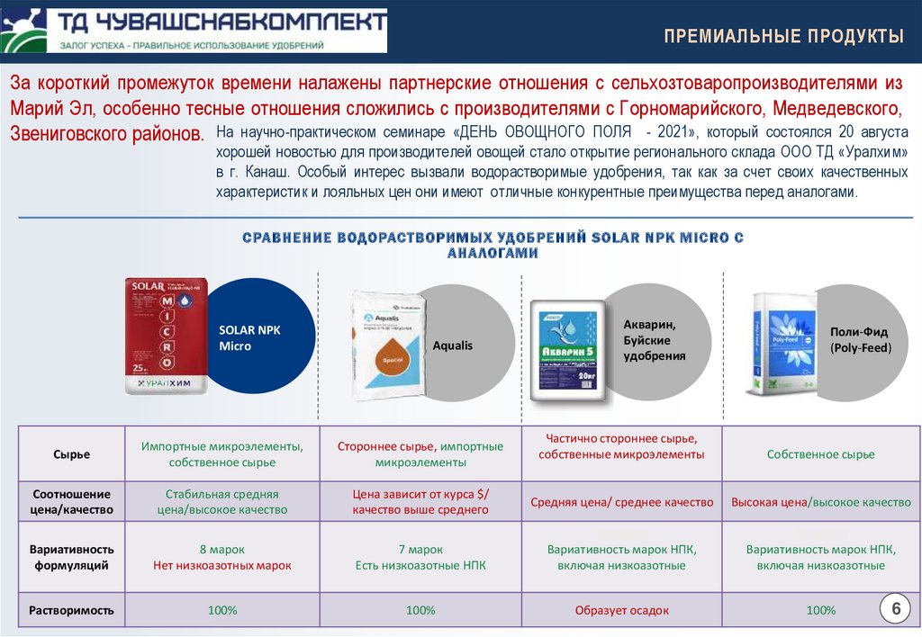 СРАВНЕНИЕ ВОДОРАСТВОРИМЫХ УДОБРЕНИЙ SOLAR NPK MICRO С