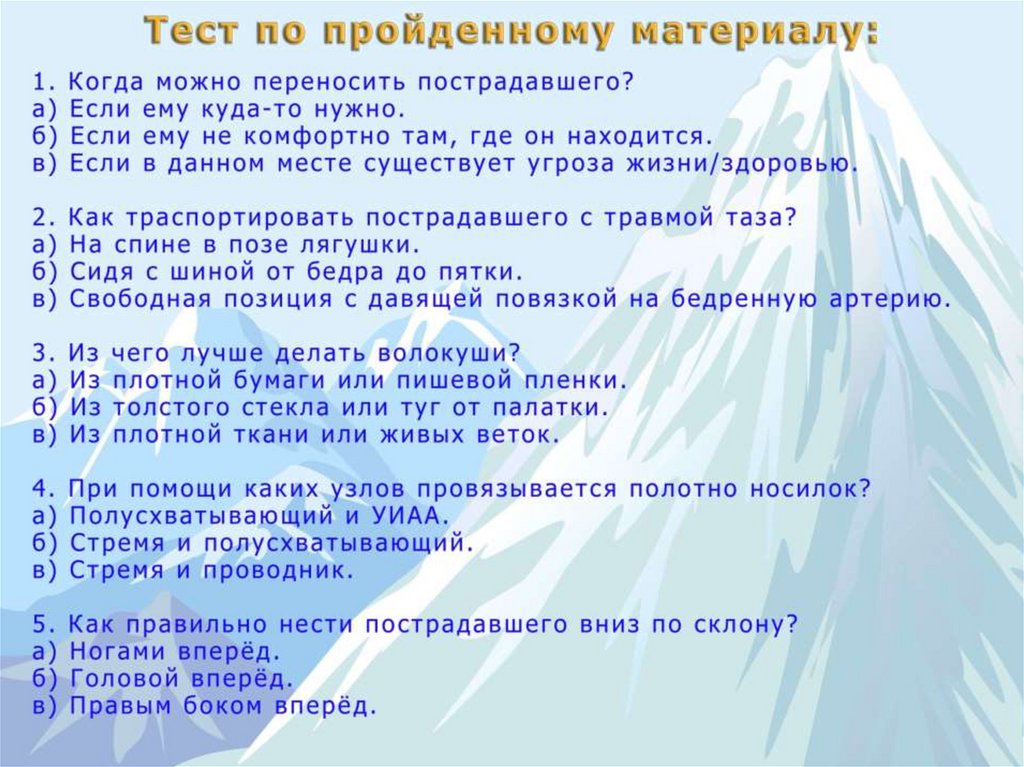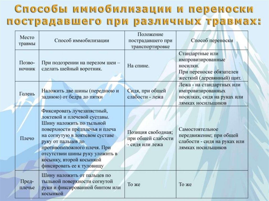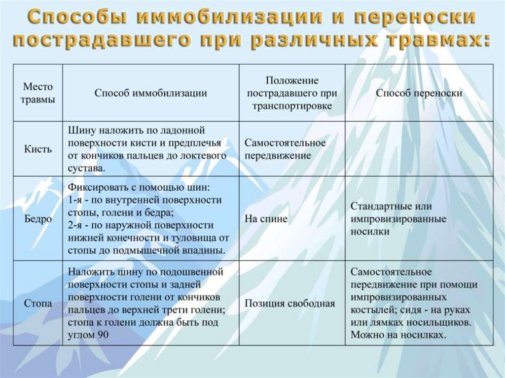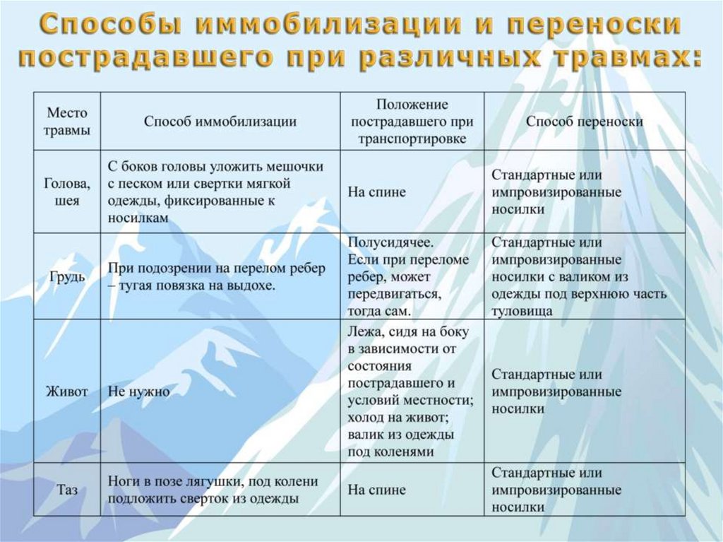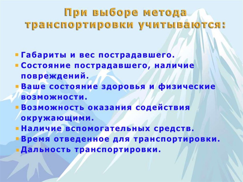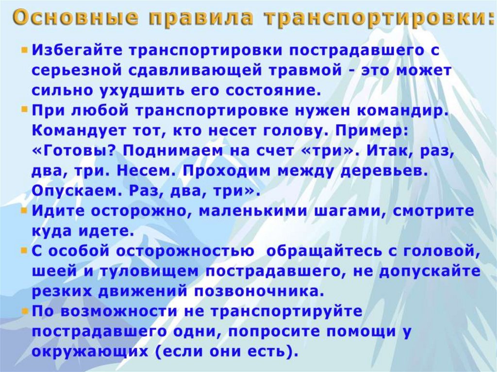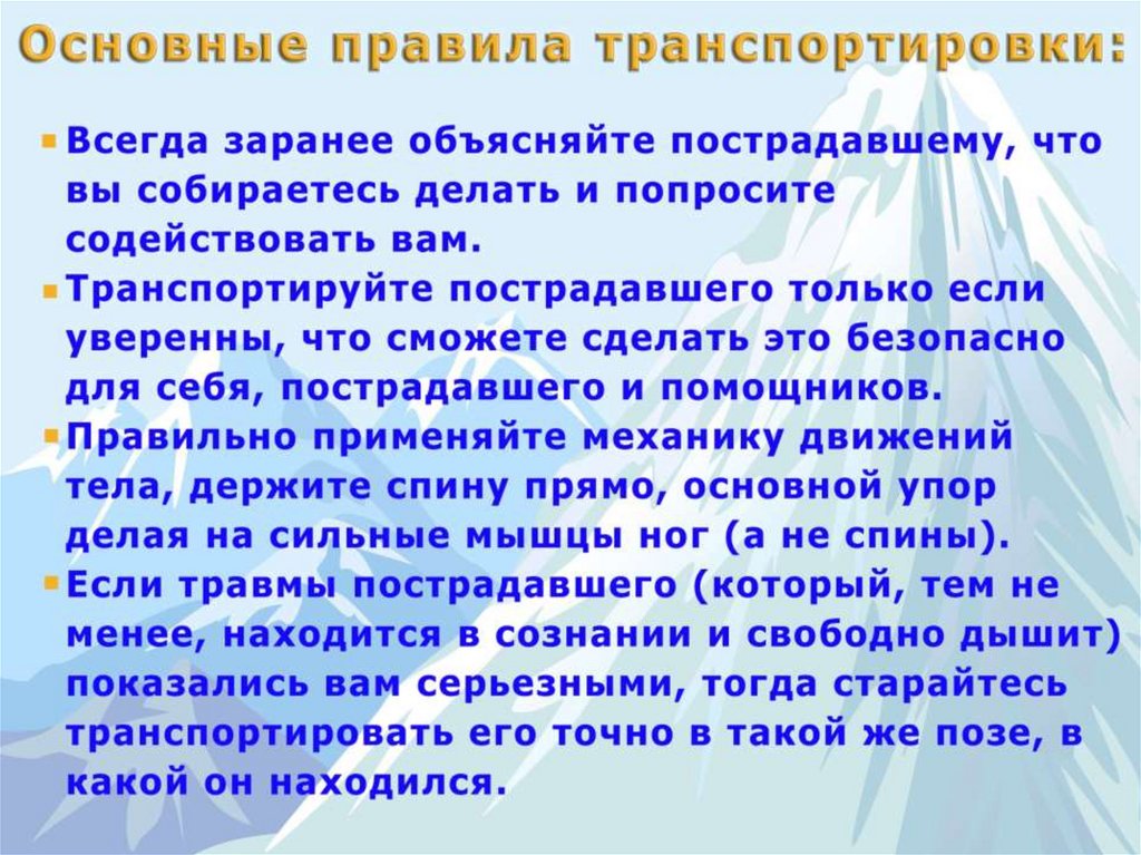 Способы эвакуации (переноски) пострадавших. Положение при транспортировке