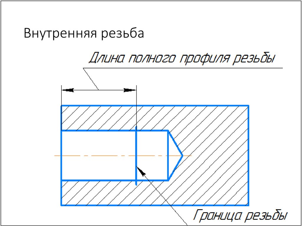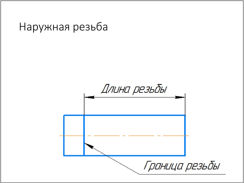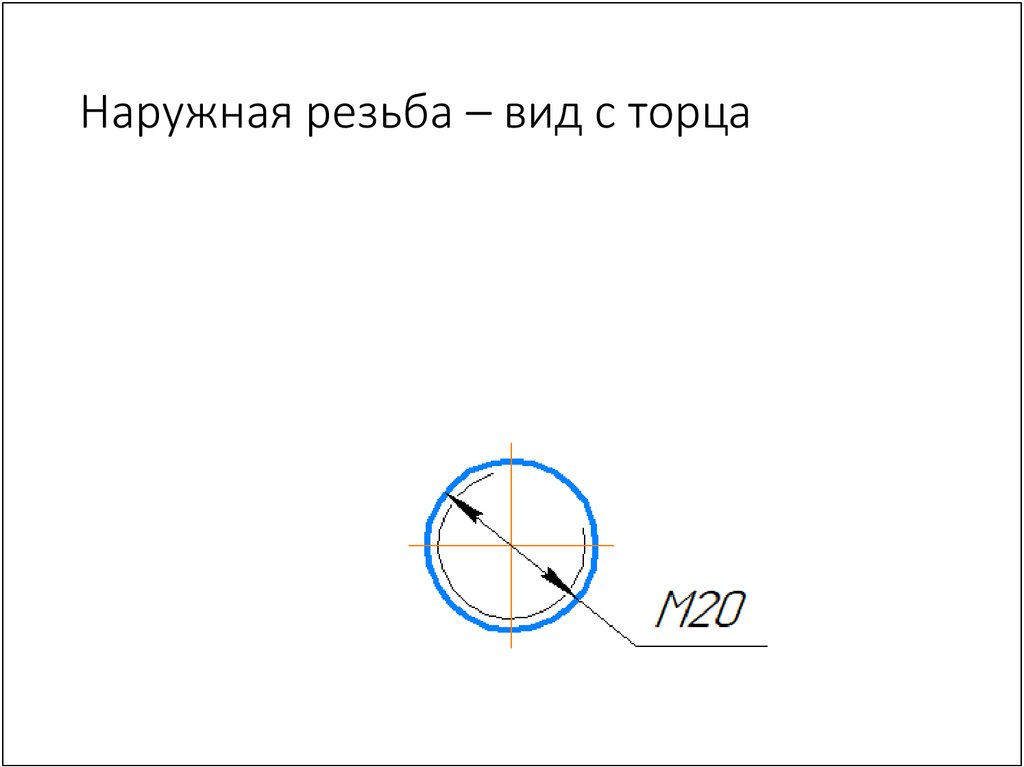 Наружная резьба – вид с торцаДуга ¾ проводится тонкой линией