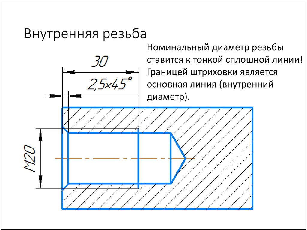Внутренняя резьба – вид с торцаНоминальный диаметр резьбы