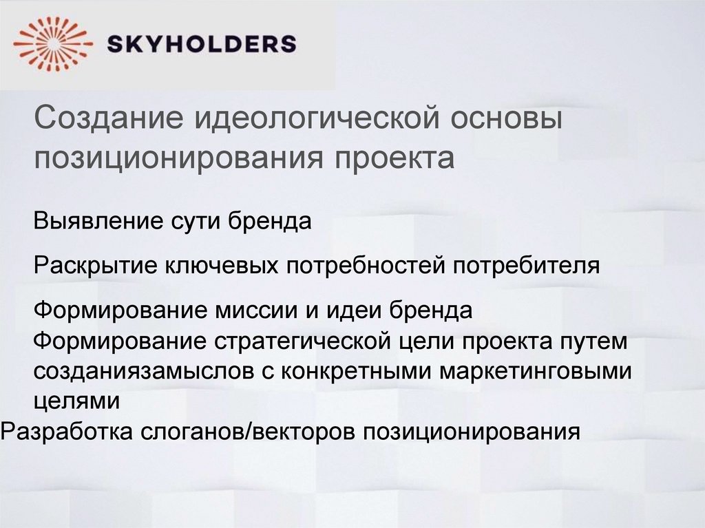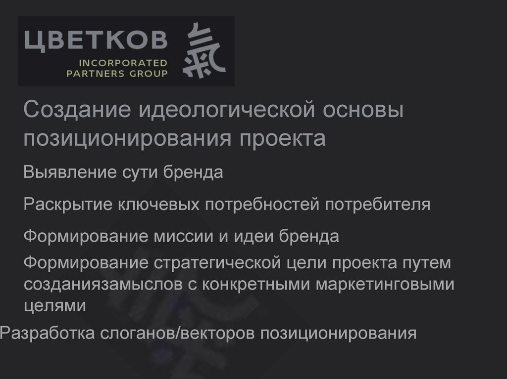 Создание идеологической основыпозиционирования проекта