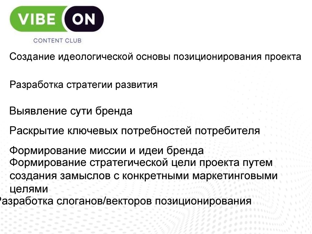 Создание идеологической основы позиционирования проектаРазработка стратегии развития