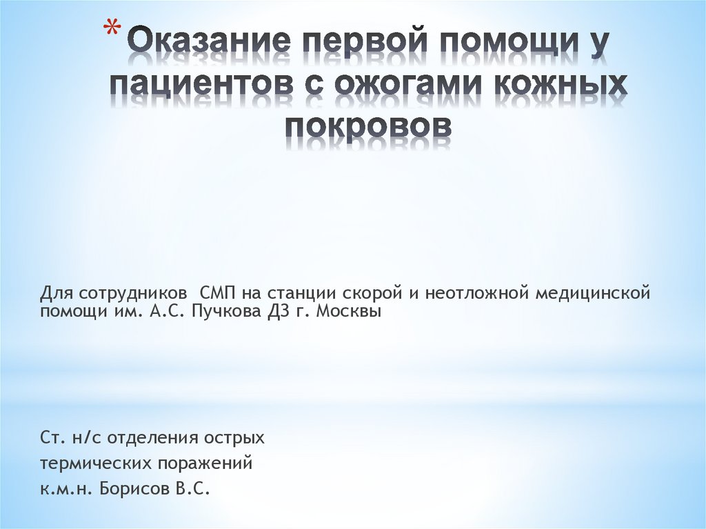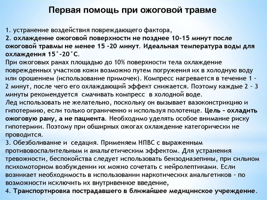 Оказание первой помощи у пациентов с ожогами кожных покровов