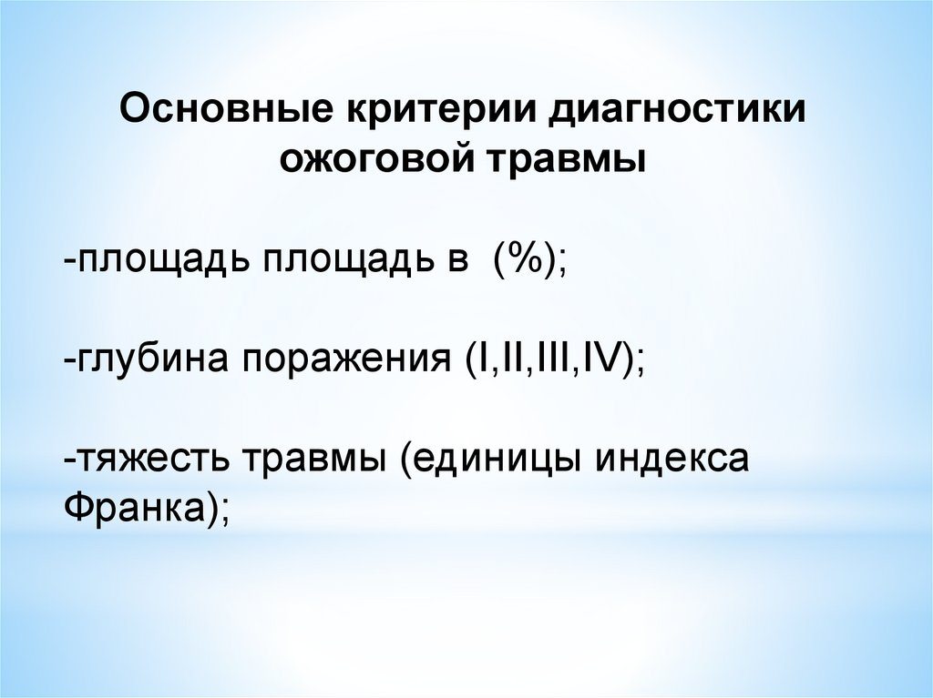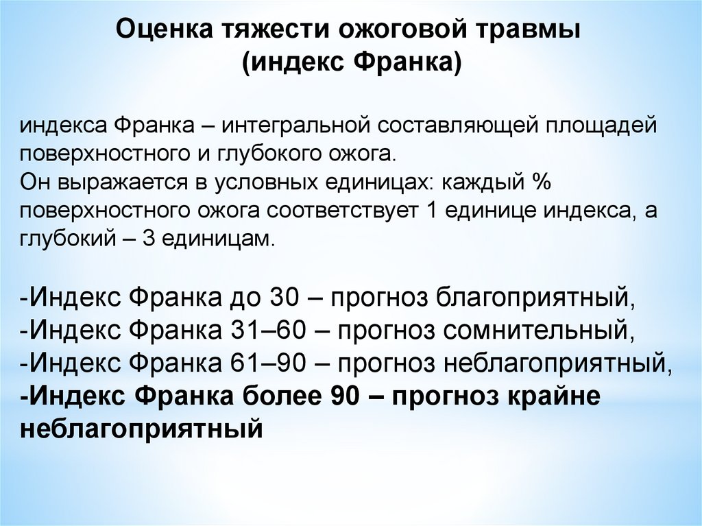 Оценка тяжести ожоговой травмы(индекс Франка)