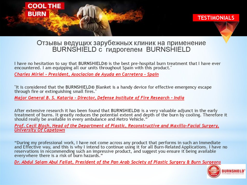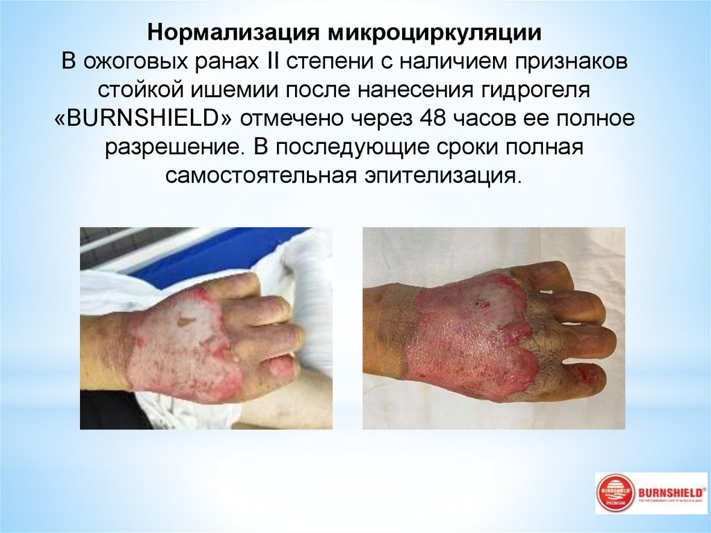 применении гидрогеля BURNSHIELD на ожоговые раны. Они оценили