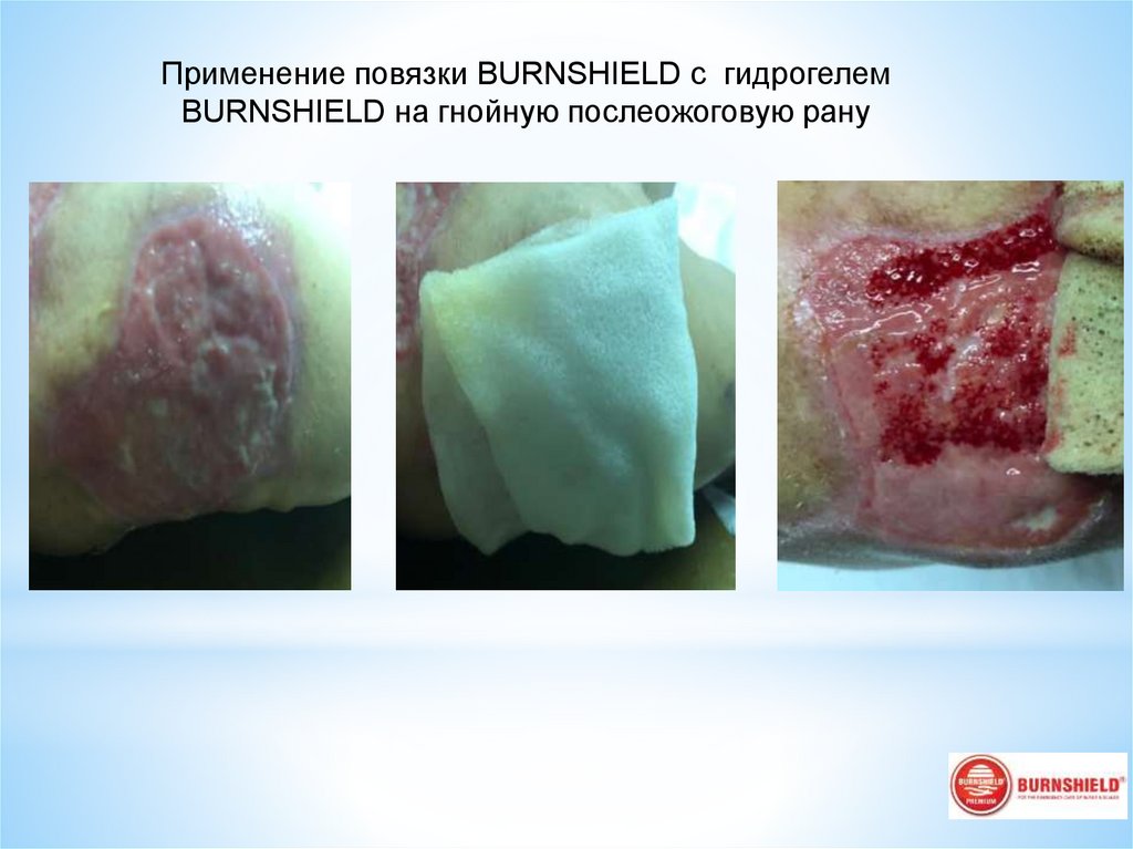 Применение повязки BURNSHIELD с гидрогелемBURNSHIELD на гнойную послеожоговую рану