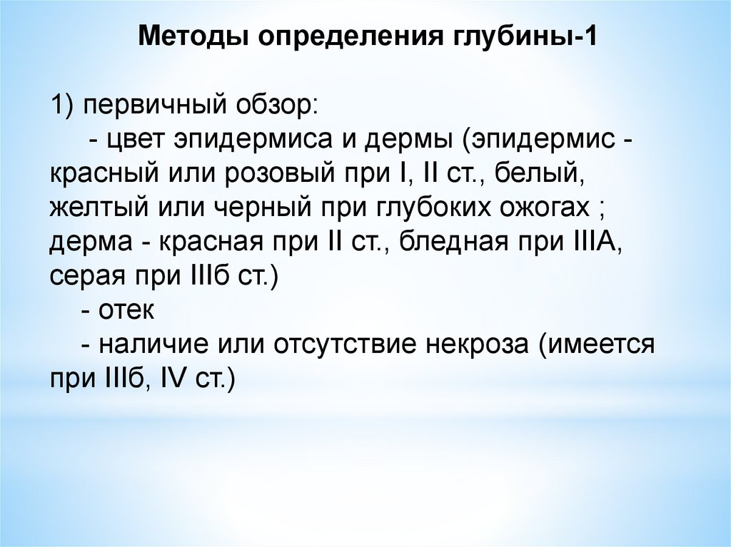 Методы определения глубины-22) иголочный тест (гиперестезия при II ст.,