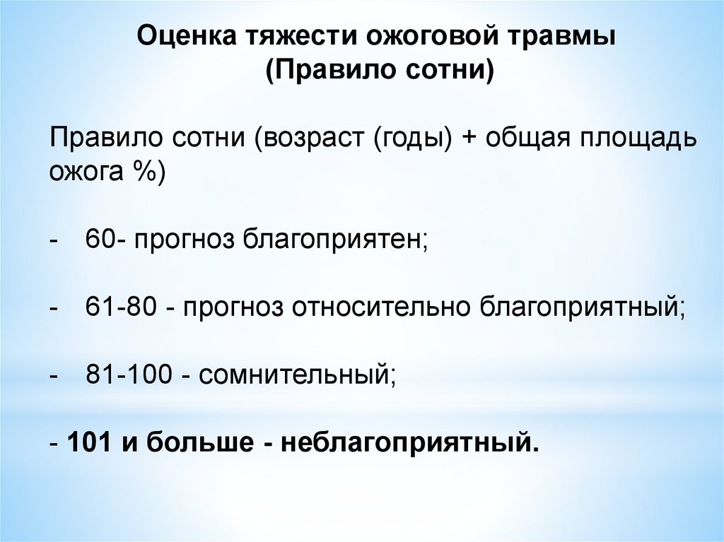 Оценка тяжести ожоговой травмы(Правило сотни)