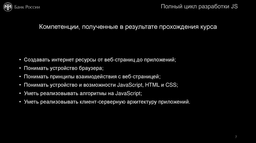 • Понимать устройство и возможности JavaScript, HTML и CSS;