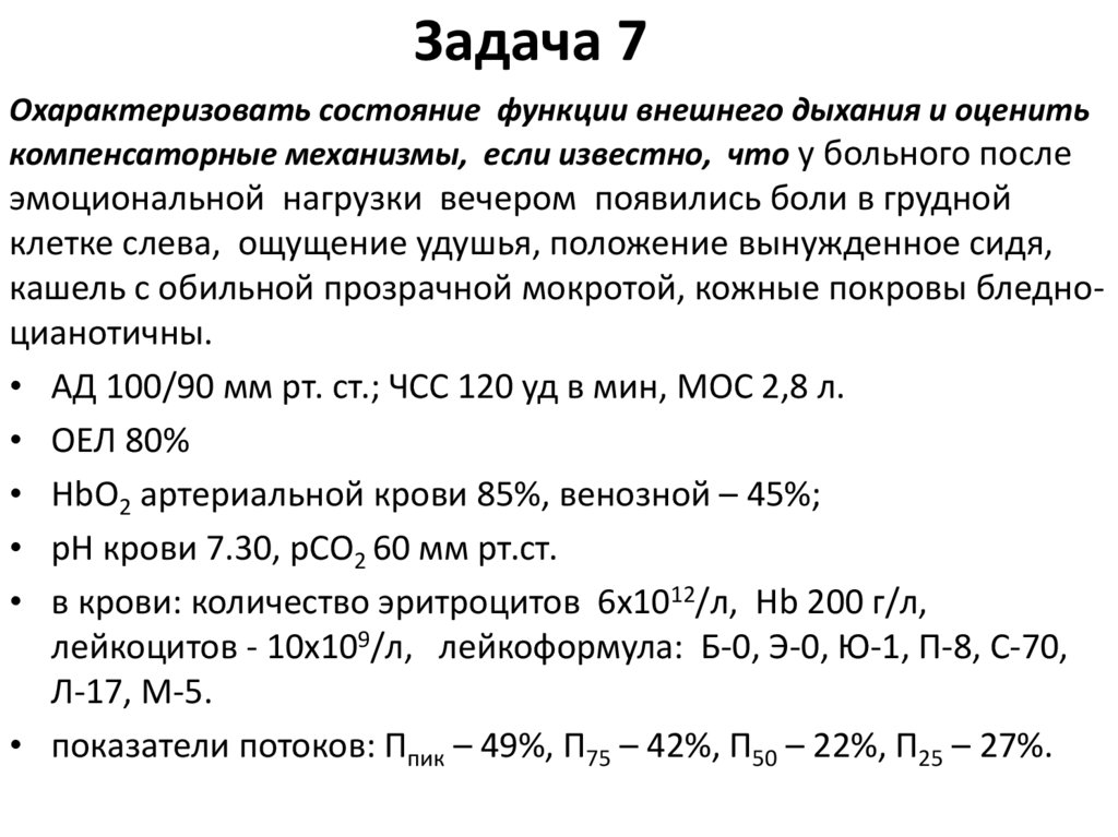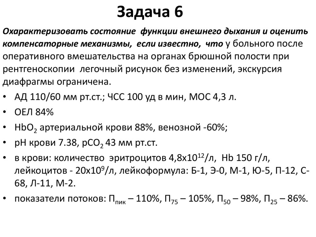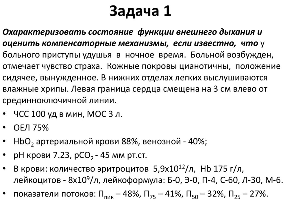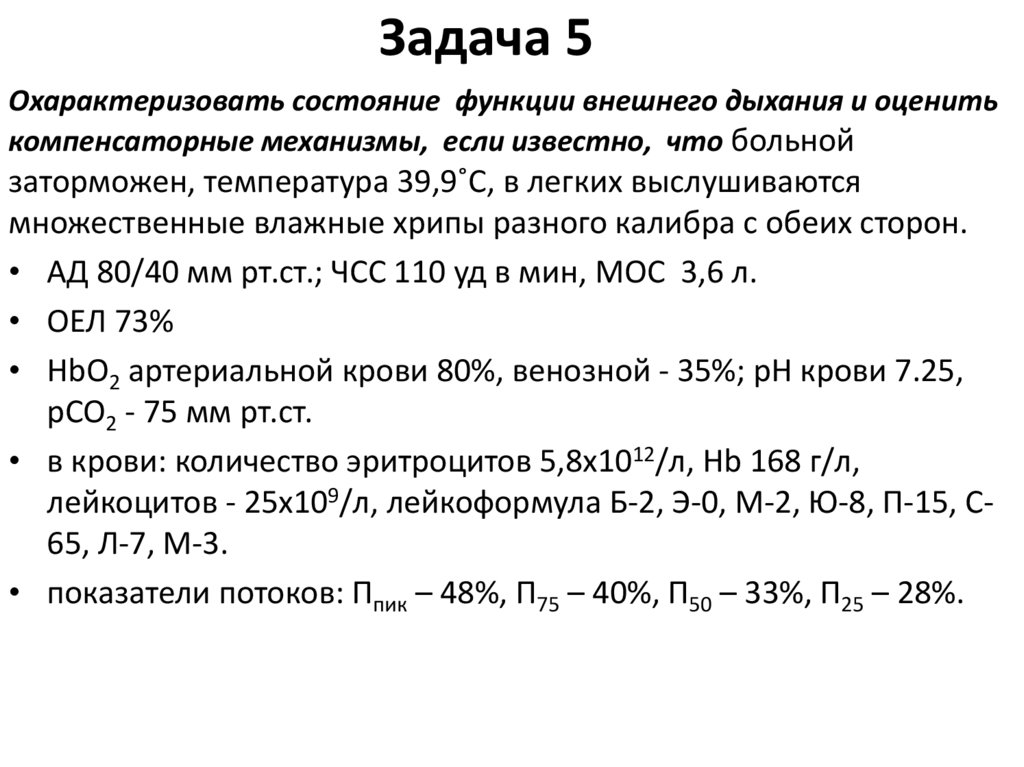 Дыхательная недостаточность. Лечебный и педиатрический факультеты (задачи)