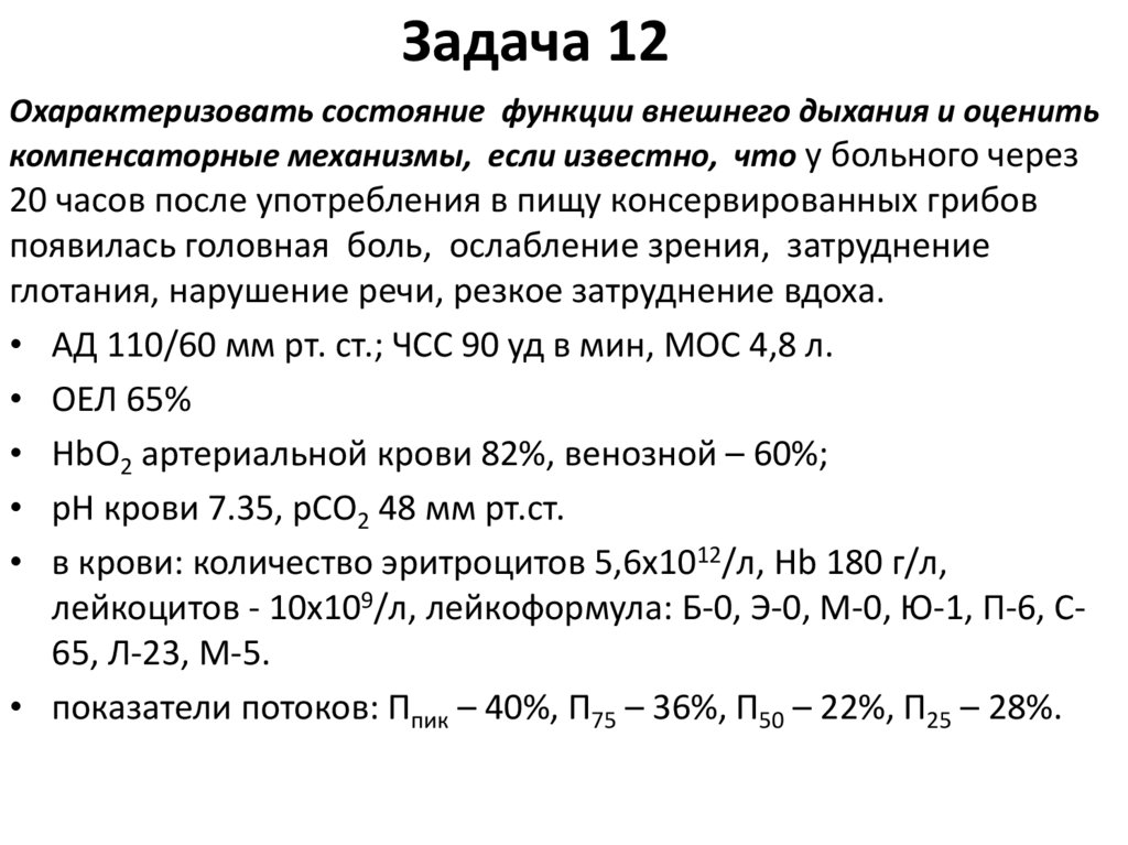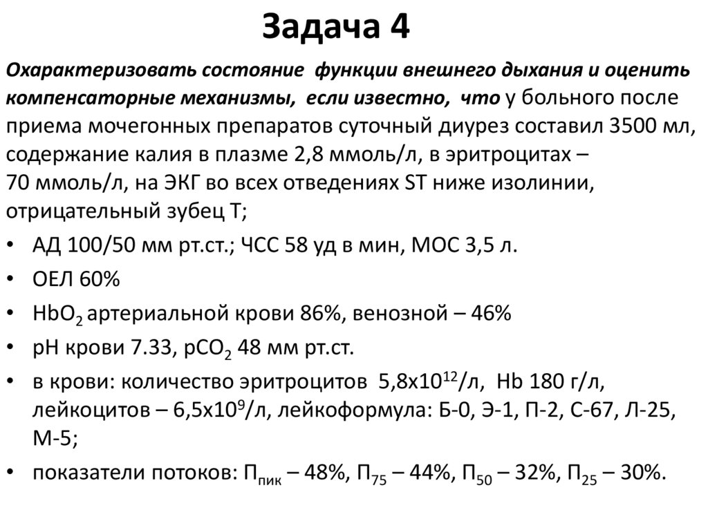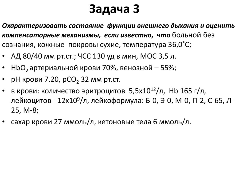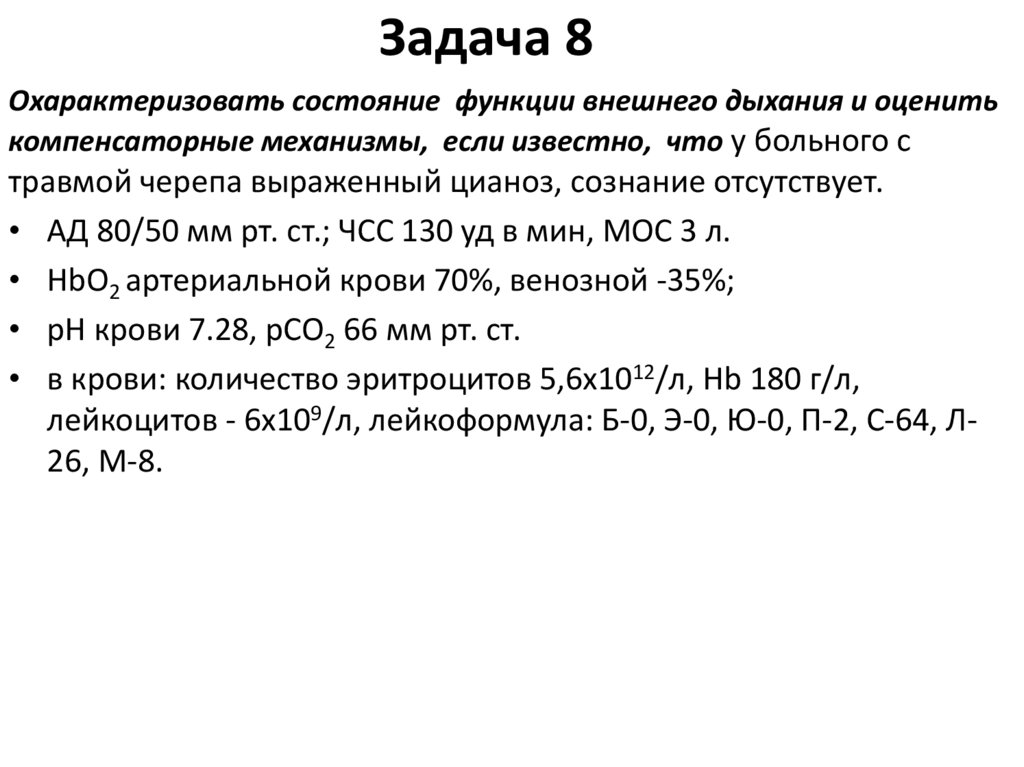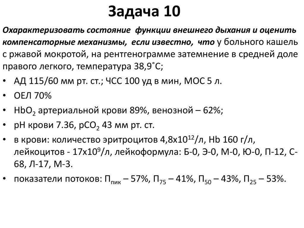 Дыхательная недостаточность. Лечебный и педиатрический факультеты (задачи)