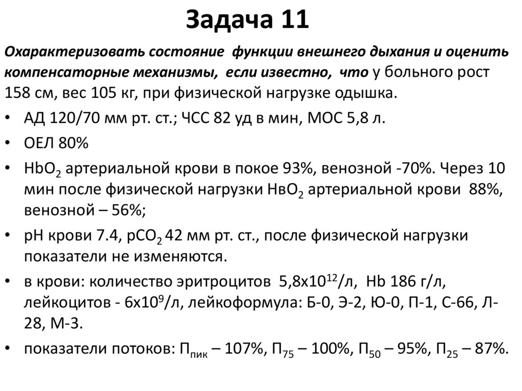 • рН крови 7.36, рСО2 42 мм рт. ст., после физической нагрузки